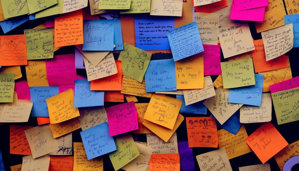 Hoe krijg ik alles wat het kind vertelt op die kleine post-its die worden meegeleverd met Mijn Leven? Dat past nooit! Dan heb ik voor één antwoord wel 4 post-its nodig en dan wordt het werkblad hartstikke onoverzichtelijk! Zal ik dat toch maar aantekeningen maken in mijn eigen schrijfblok?