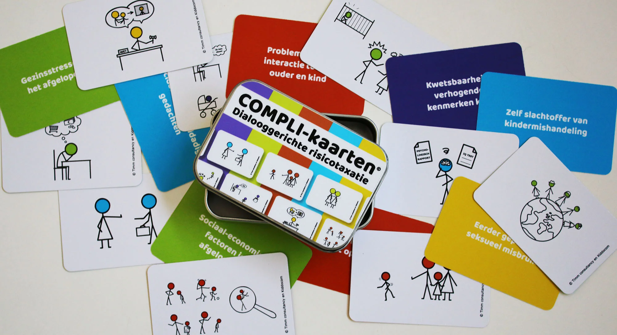 Werk je met ‘Signs of Safety’ of vanuit de methode ‘Samenwerken aan Veiligheid’ al intensief samen met ouders en kinderen en vind je het leuk om een bijdrage te leveren aan de doorontwikkeling van de COMPLI-kaarten voor kinderen? Zodat je ook met kinderen het gesprek kunt aangaan over risicofactoren in de thuissituatie? Neem contact op met Arianne